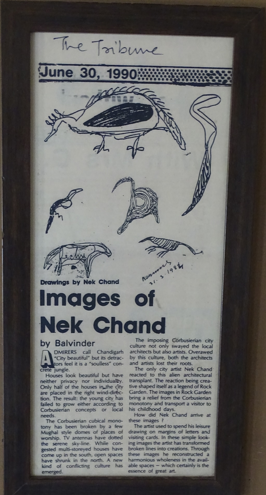 17 11 2021 34Views 0Likes 0Comments Chandigarh Posted By tushar Nek Chand‘s Drawings and Signature from A Newspaper Article – This photo was taken at Nek Chand Rock Garden in Chandigarh. Related posts: Distance from Dharamshala to Various Cities and Towns Punjabi Truck Shayri Ashram Popular Posts: A National Park Called Corbett – Established in 1936 Quote Behind Jeep About Anger Management Pandit Ji Di Hatti (Since 1950/24 Hours) – One Stop for Parantha Lovers Popular Tags: VrindavanRishikeshShirdi