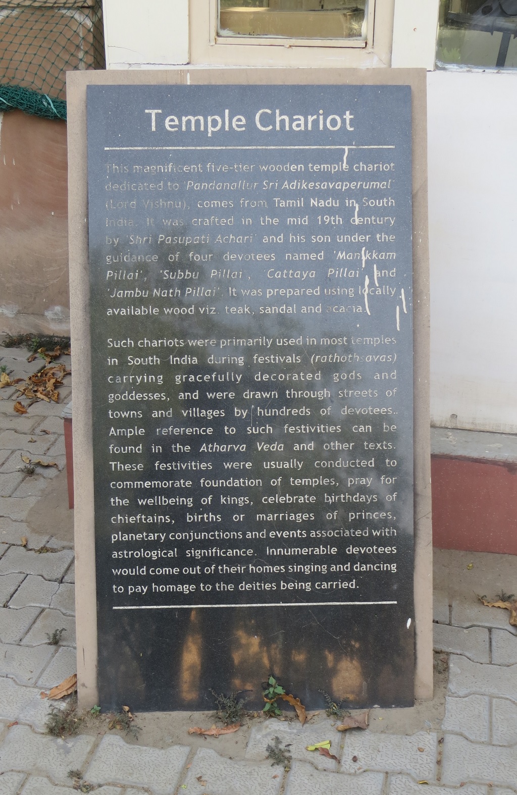 28 05 2024 28Views 0Likes 0Comments Delhi Posted By tushar 19th Century Wooden Temple Chariot – Dedicated to Lord Vishnu – This photo was taken at the National Museum, New Delhi. Related posts: Is There Any Bus Service from Bharatpur to Delhi? Lal Bahadur Shastri Ji’s Personal Car – Purchased with a Loan History of Ugrasen-ki-Baoli (in Hindi) Popular Posts: Garbhagriha, Mahanal Temples and Math, Menal Tiger Resting in Pond 19th Century Wooden Temple Chariot – Dedicated to Lord Vishnu Popular Tags: VrindavanRishikeshShirdi