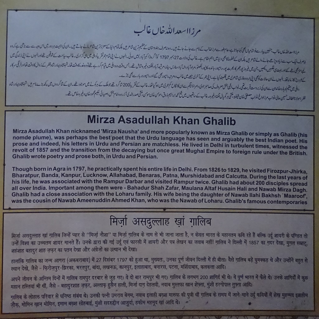 Mirza Asadullah Khan Ghalib (popularly known as Mirza Ghalib) – This photo was taken at Ghalib Memorial/Haveli Mirza Ghalib at Mir Qasim Jaan Gali, Ballimaran, Chandni Chowk, Old Delhi.