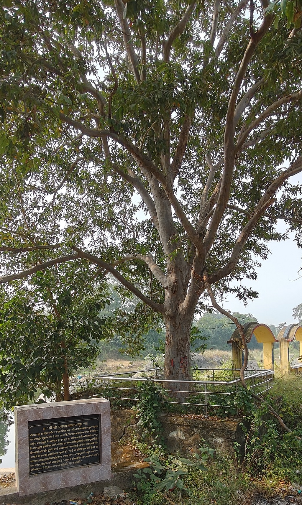 This “Shri Shri Ekta Sankalp Vriksha” located at Bhimkhanda ancient tourist spot is known as the Arjun tree in the local language, whose botanical name is Terminalia Arjuna and Nadi Srij in Sanskrit. Every part of this tree is full of medicinal properties. On careful observation, it can be seen that its two branches are recombined and three sub-branches emerge from one and two from the other. These five sub-branches represent the five Pandavas and two branches represent Mother Kunti and Madri. This tree represents the resolution of the unbreakable unity of the Pandu sons who were in trouble after the Varanavat Lakhshagriha fire incident. It teaches us that “Difficulties in life do not come to destroy but to awaken the hidden power and energy in man”.