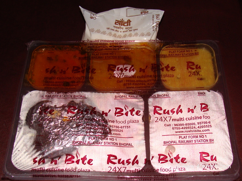 At the Bhopal Junction on the train, dinner packets were served. Amount paid.
