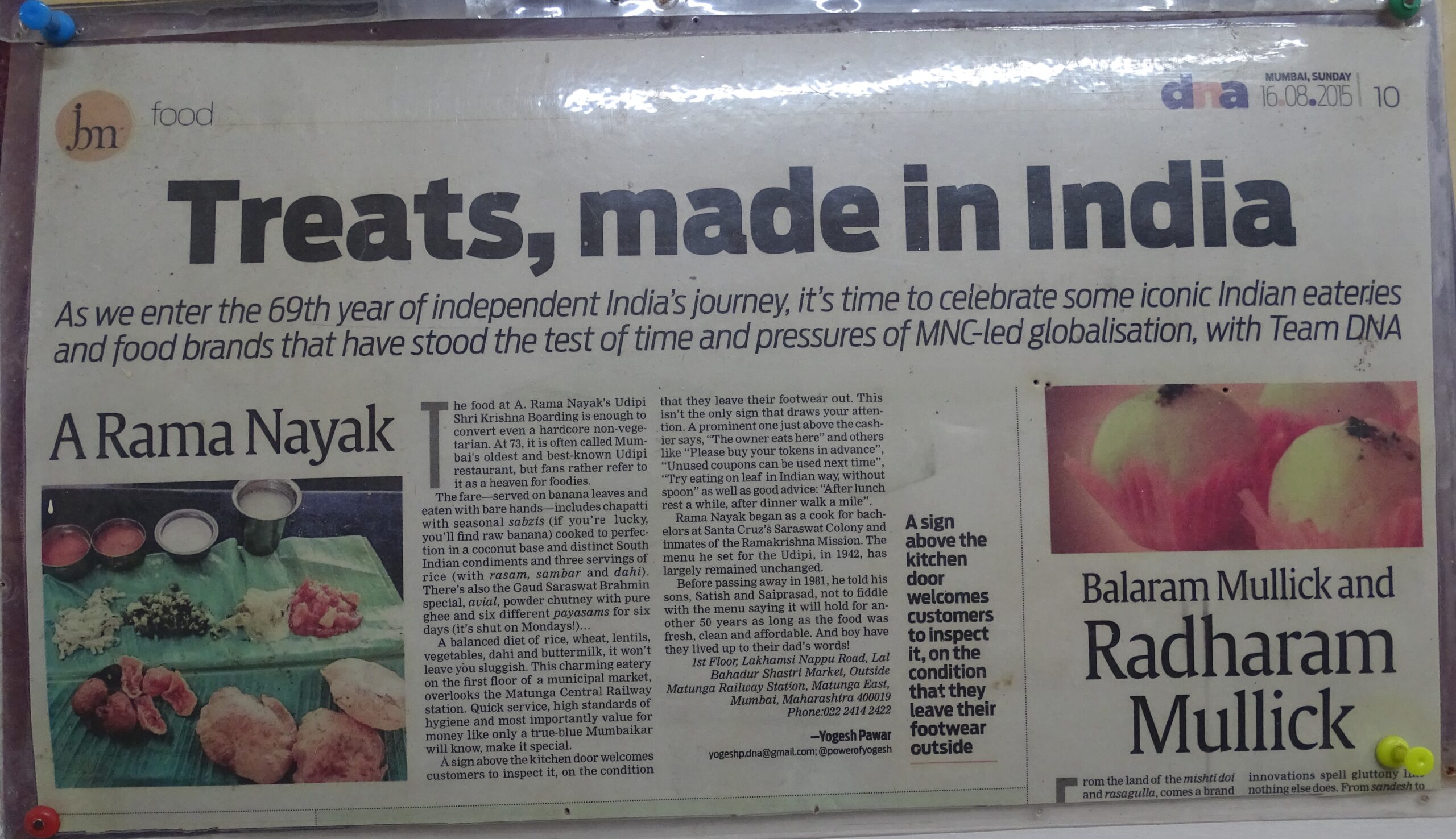 Today, I decided to visit another one of the oldest South-Indian restaurants – A. Rama Nayak’s Udipi Shri Krishna Boarding, situated next to Matunga Central Railway Station, Mumbai.