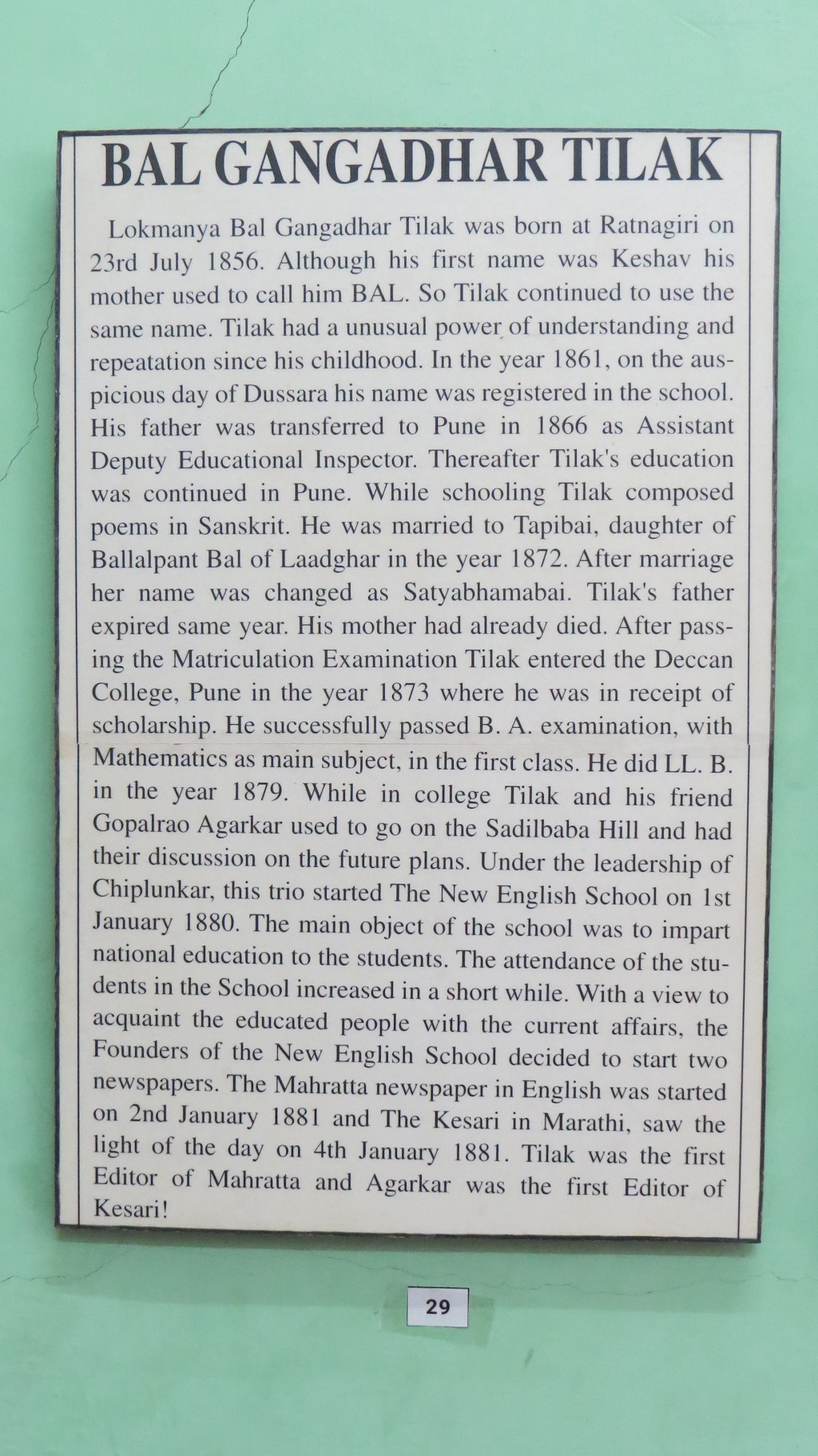 13 04 2024 9Views 0Likes 0Comments Maharashtra, Pune Posted By tushar Lokmanya Bal Gangadhar Tilak – First Name was Keshav – This photo was taken at Lokmanya Tilak Museum in Pune (Maharashtra). Related posts: Clive Lloyd’s Maroon Cap T-55 Tank – Soviet Origin, 1950 What are the Visit Hours/Entry Fees of Lokmanya Tilak Museum? Popular Posts: Horses for Sale Khandelwal Chaat Bhandar – Best in Ajmer for Kadhi-Kachori What are the Boating Timings in Naini Lake? Popular Tags: VrindavanRishikeshShirdi