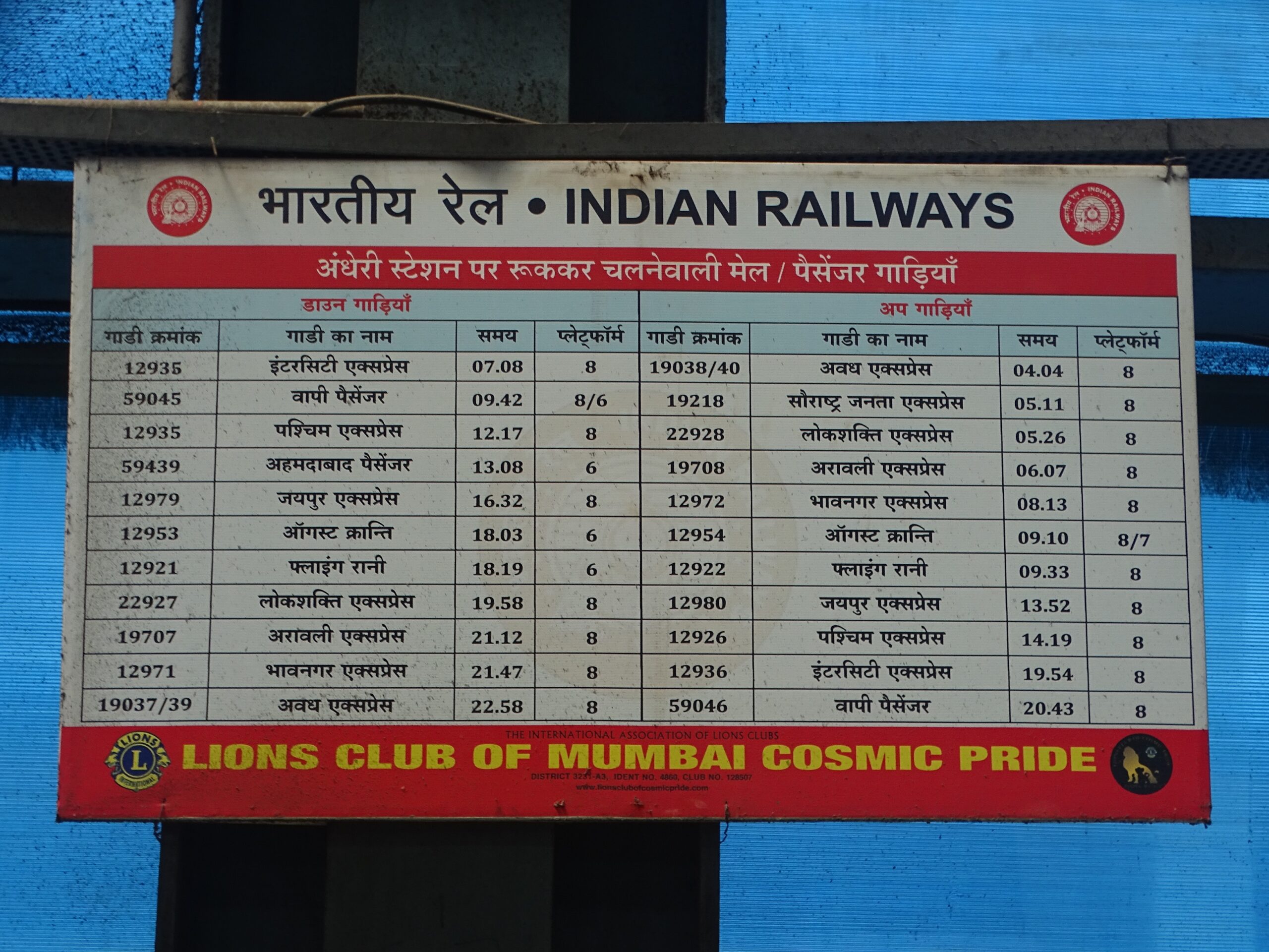 Train Number – Train Name – Time – Platform