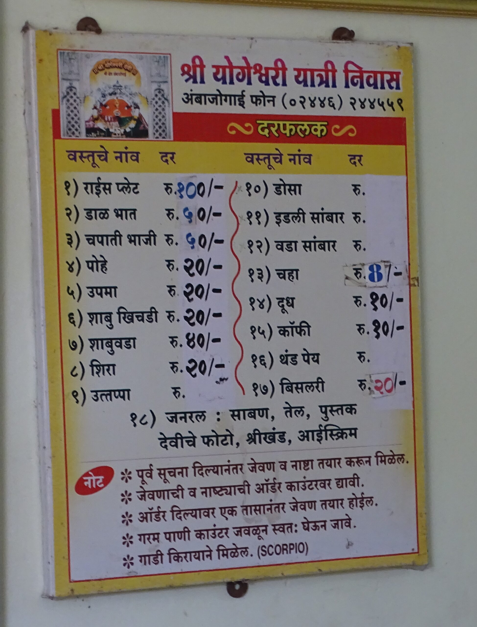 Sri Yogeshwari Yatri Niwas Ambajogai Phone (02446) 244559