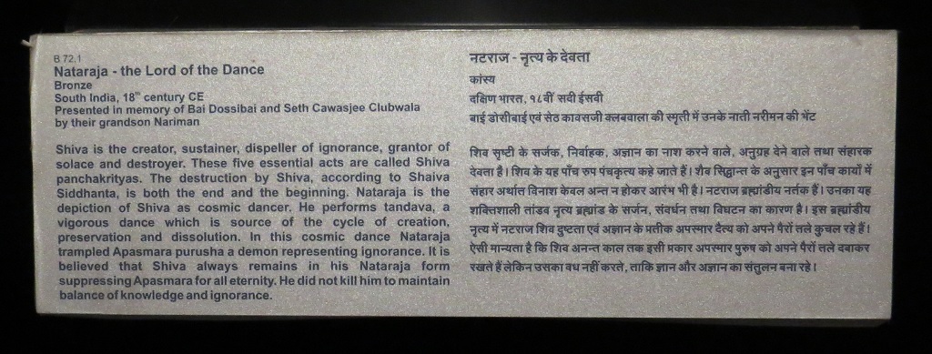 About Nataraja – The Lord of the Dance – This photo was taken at Chhatrapati Shivaji Maharaj Vastu Sangrahalaya in Mumbai, (Maharashtra).