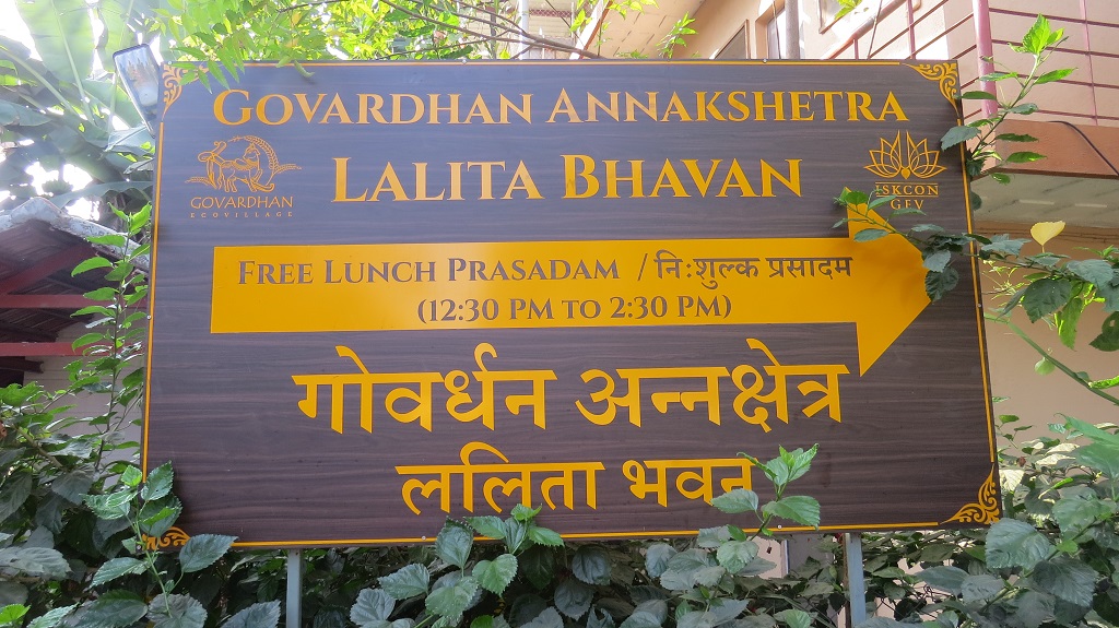 Timings: Free Khichdi Prasadam Distribution – This photo was taken at Govardhan EcoVillage – GEV at Palghar (Maharashtra).
