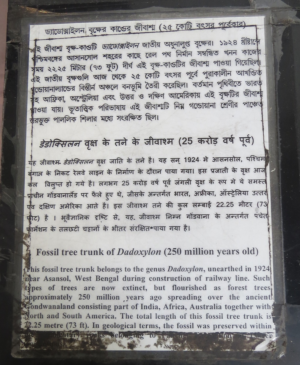 03 12 2021 151Views 0Likes 0Comments Kolkata, West Bengal Posted By tushar Fossil Tree Trunk of Dadoxylon (250 Million Years Old) – This photo was taken at The Indian Museum in Kolkata. Related posts: Chinese Silver Pheasant Egg of Dinosaur (70 Million Years Old) Adyapeath Temple – Founded Back in 1915 Popular Posts: No Credit Quote (in Hindi) Have You Ever Tried Roadside Ear Wax Cleaning? Heroines of Indian Silent Cinema Popular Tags: VrindavanRishikeshShirdi